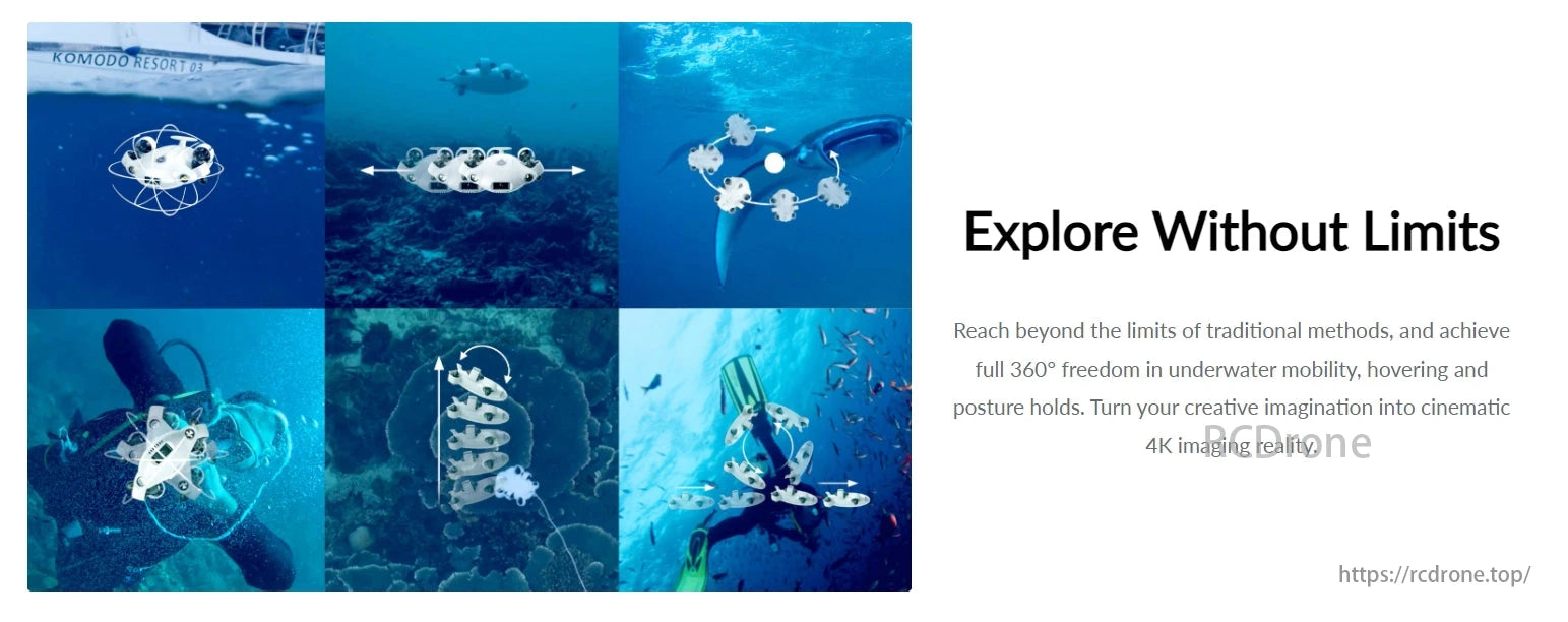 FIFISH V-EVO Underwater Drone offers 360° mobility, hovering, and 4K imaging for limitless exploration.