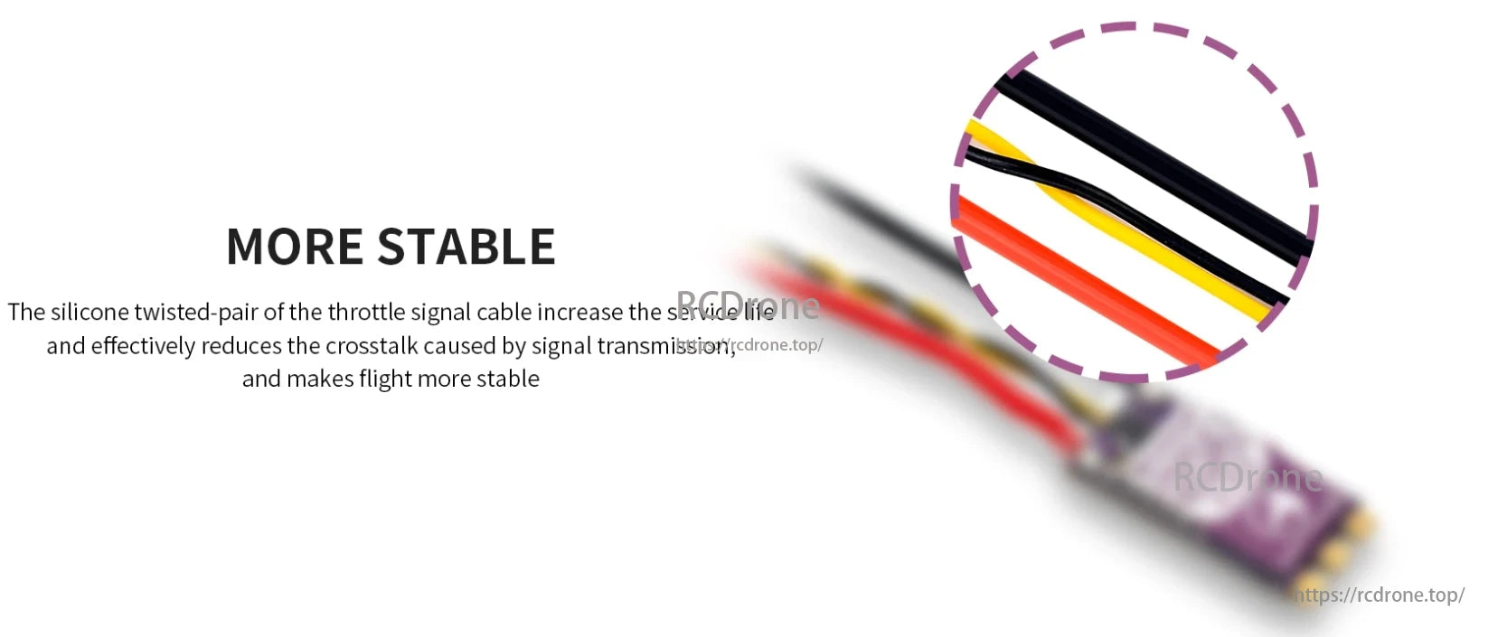 Signal Stability: Silicone twisted-pair signal cable reduces crosstalk and enhances flight stability.