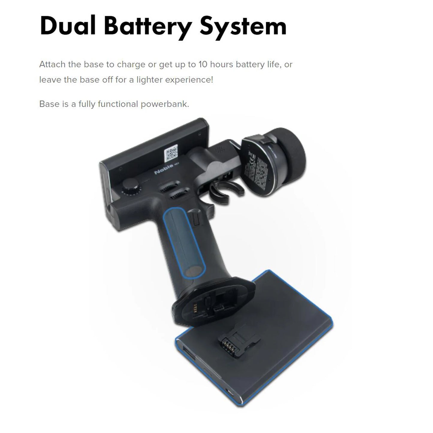Enjoy up to 10 hours of continuous use with our dual battery system, which can be charged via the base station. Alternatively, detach the base to enjoy a lightweight experience and still have access to a fully functional power bank.
