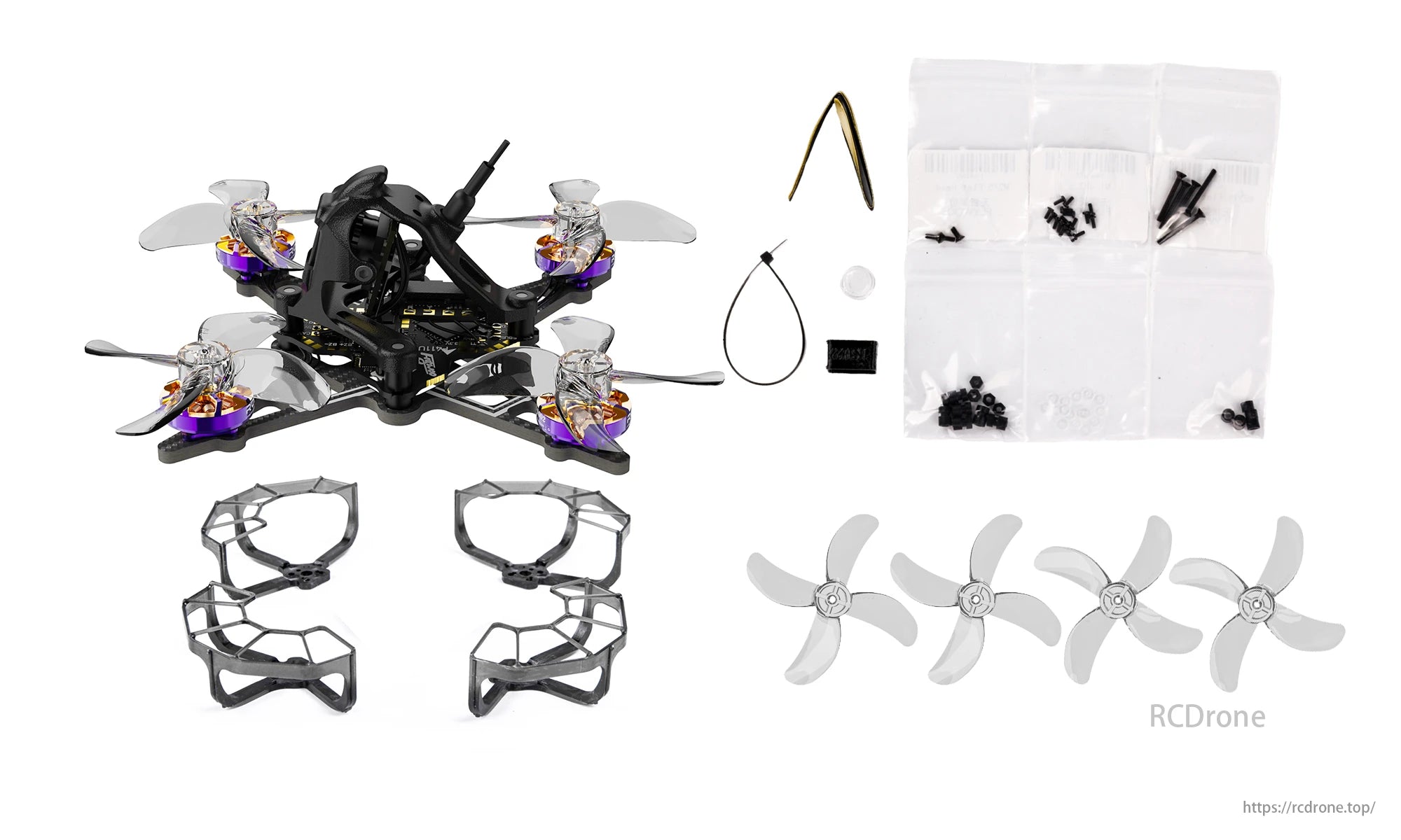 The drone's GOKU Versatile F411 VTX 1S AIO V2 includes a built-in 250mW video transmitter, enabling an extended flight range and ultimate lightweight design without sacrificing performance, with improved circuit board stability.