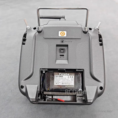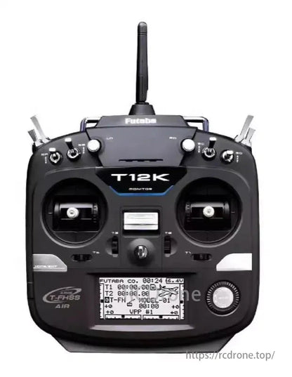 Futaba 12K Radio System with dual joysticks, buttons, and a multi-function backlight display for precise control.