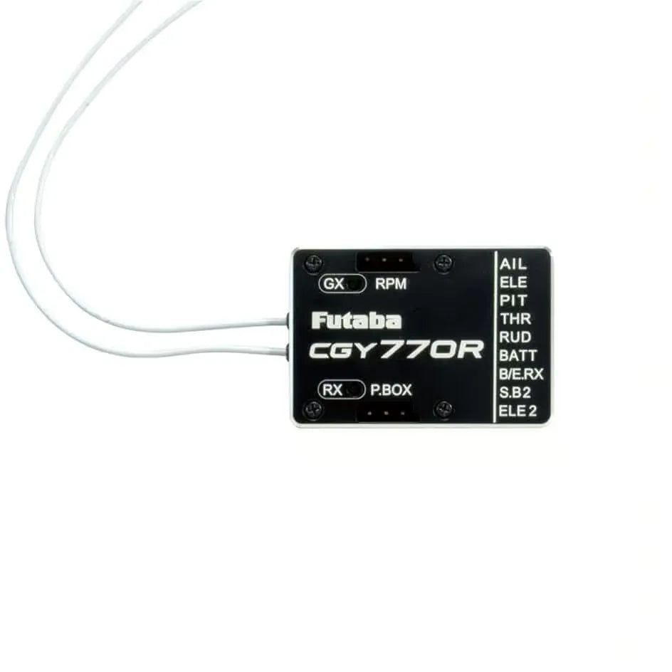 With support for S.Bus2 telemetry, 760µs ultra-fast response servos, and wireless programming via Futaba transmitters or the optional GPB-1 programming box, the CGY770R offers precise control and tuning flexibility for any advanced RC helicopter setup.