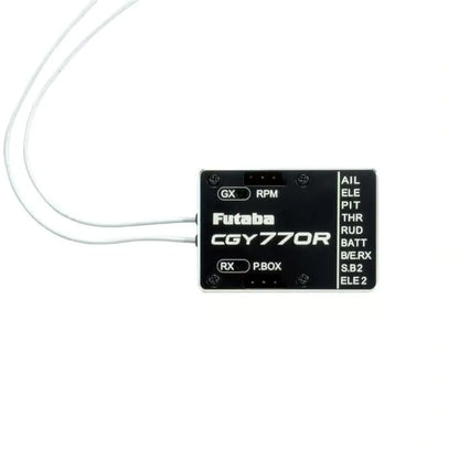 The Futaba CGY770R Helicopter Flight Control Gyro is a professional-grade 3-axis gyro system designed for 3D and F3C RC helicopter pilots who demand precision, stability, and integrated functionality. Supporting 250 to 800 size helicopters, the CGY770R combines a cyclic gyro, tail rotor gyro, governor, and built-in T-FHSS/FASSTest receiver into a single compact aluminum unit.