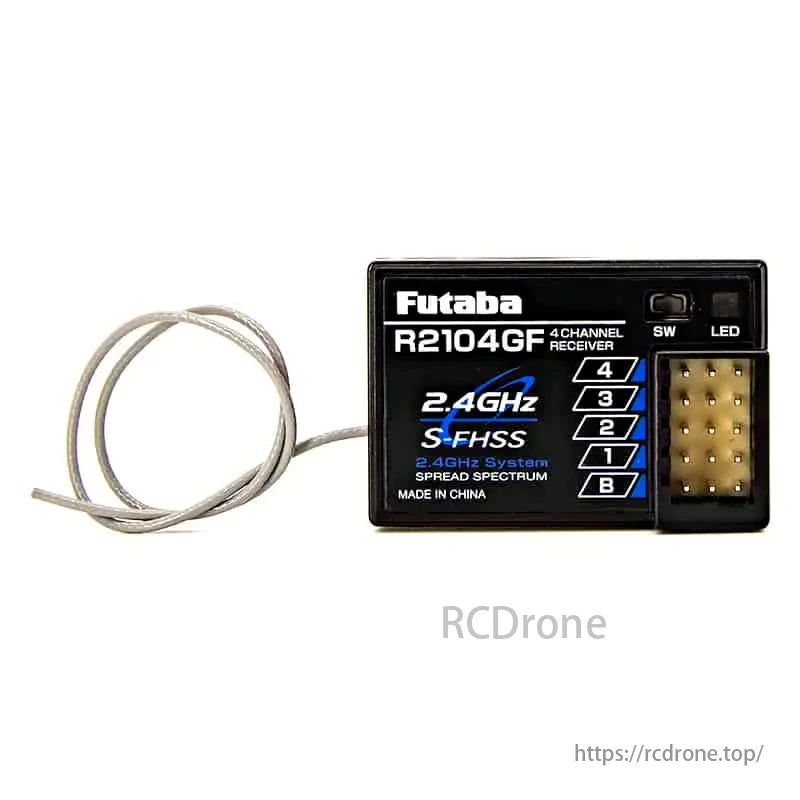 The Futaba R2104GF is a compact 4-channel S-FHSS receiver built for surface RC models where space is limited and weight matters. It delivers stable 2.4GHz signal performance and is well-suited for electric and nitro RC cars or boats that don’t require telemetry.