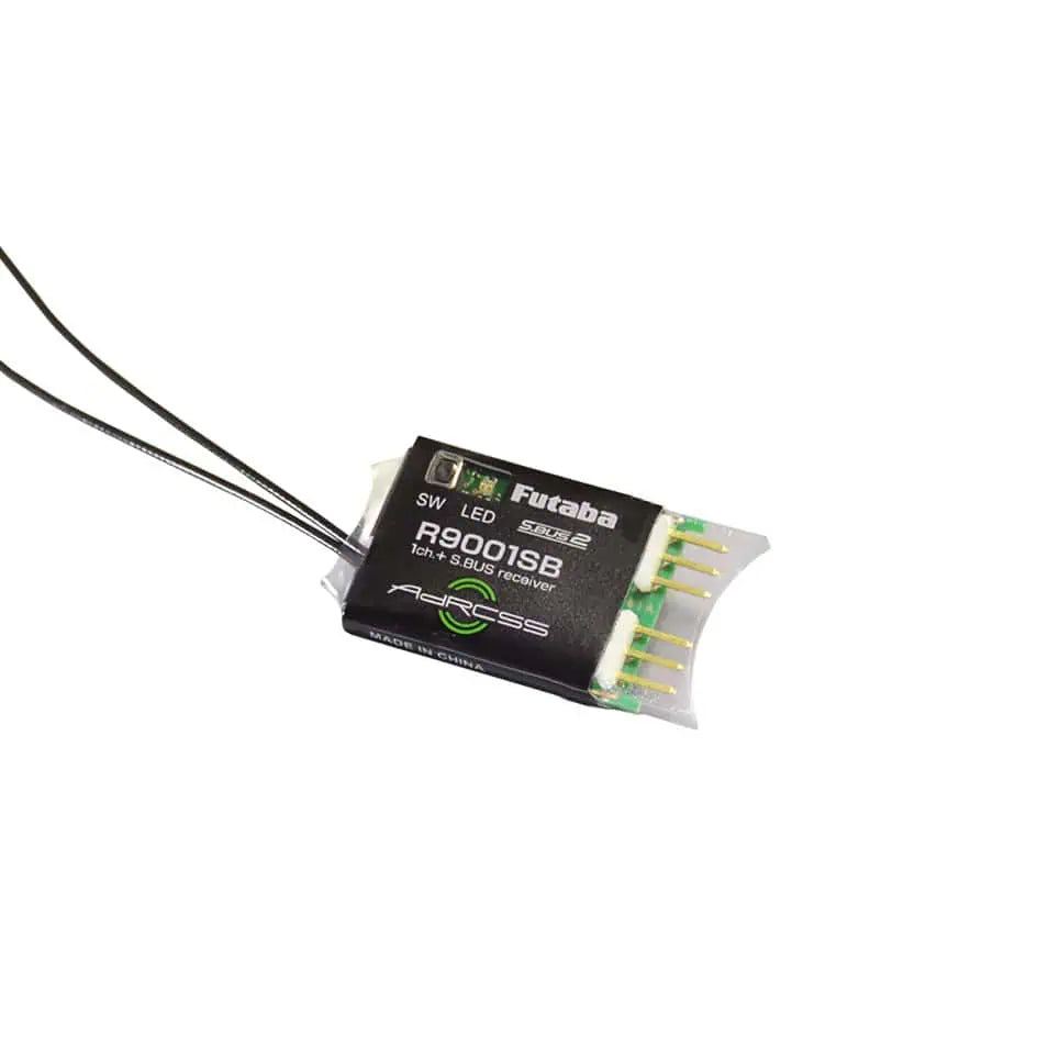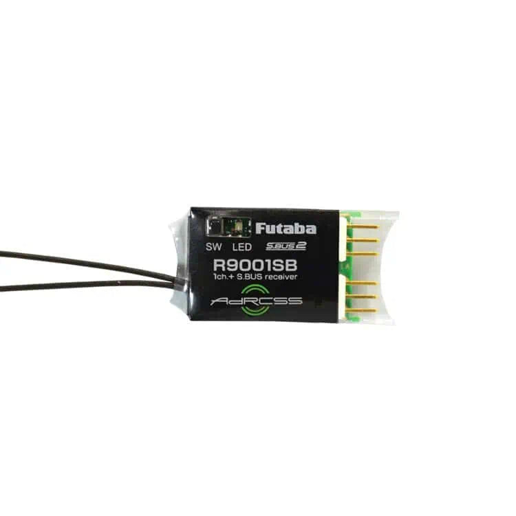 The Futaba R9001SB is a compact and lightweight 1-channel air receiver designed for FPV racing and compatible with the TM-18 RF Module. It features dual antenna diversity for reliable signal reception and supports S.Bus communication for streamlined control.