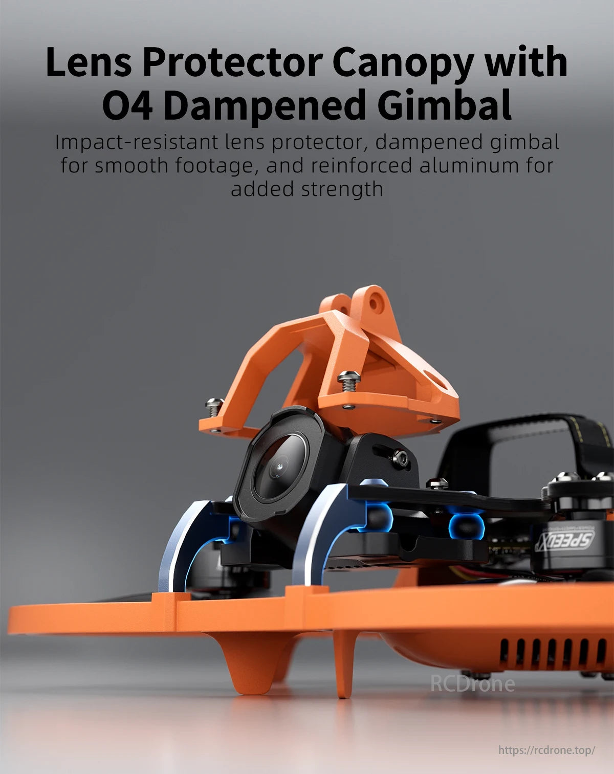 Lens Protector Canopy with 04 Dampened Gimbal ensures smooth footage and added strength.