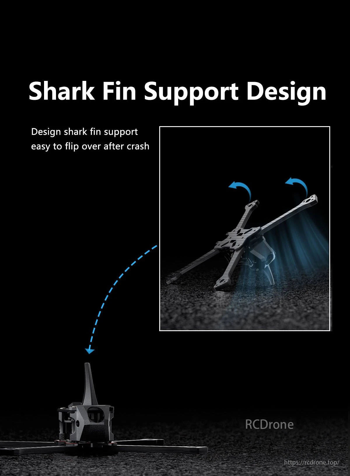 Shark Fin Support Design for easy flipping after crashes on GEPRC GEP-Racer 5-inch FPV Drone Frame.