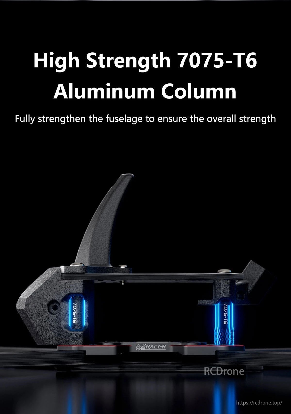 High-strength 7075-T6 aluminum column ensures structural integrity. Drone frame designed for durability and performance.