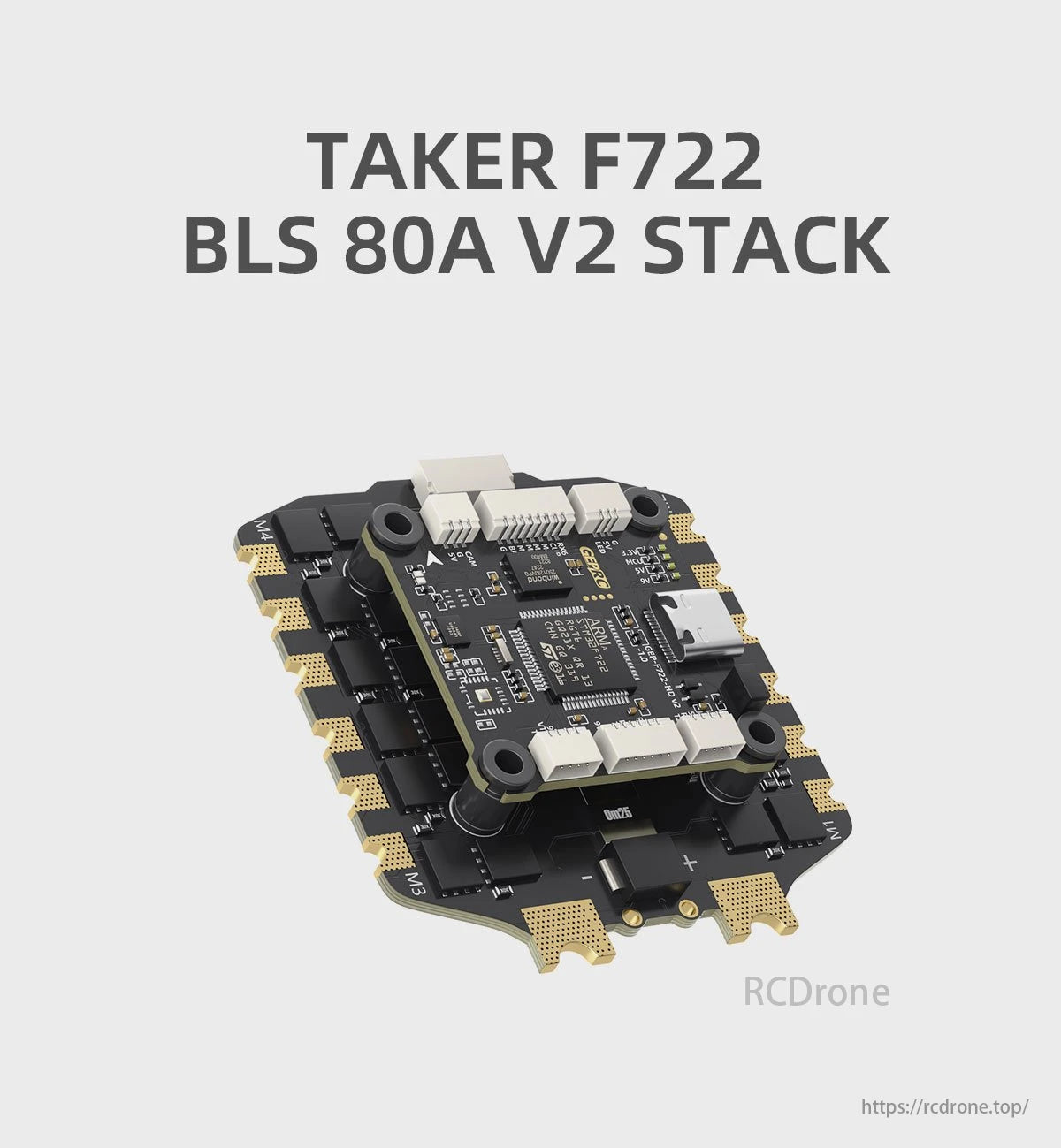 The GEPRC TAKER F722 BLS 80A V2 Stack is a premium flight controller stack designed for high-power FPV drones demanding exceptional performance and reliability. It integrates the advanced GEP-F722-HD V2 flight controller, powered by the STM32F722 MCU and high-precision ICM42688-P gyroscope, with the robust TAKER H80_BLS 80A 4IN1 ESC, capable of handling up to 80A continuous current on 3–6S LiPo.