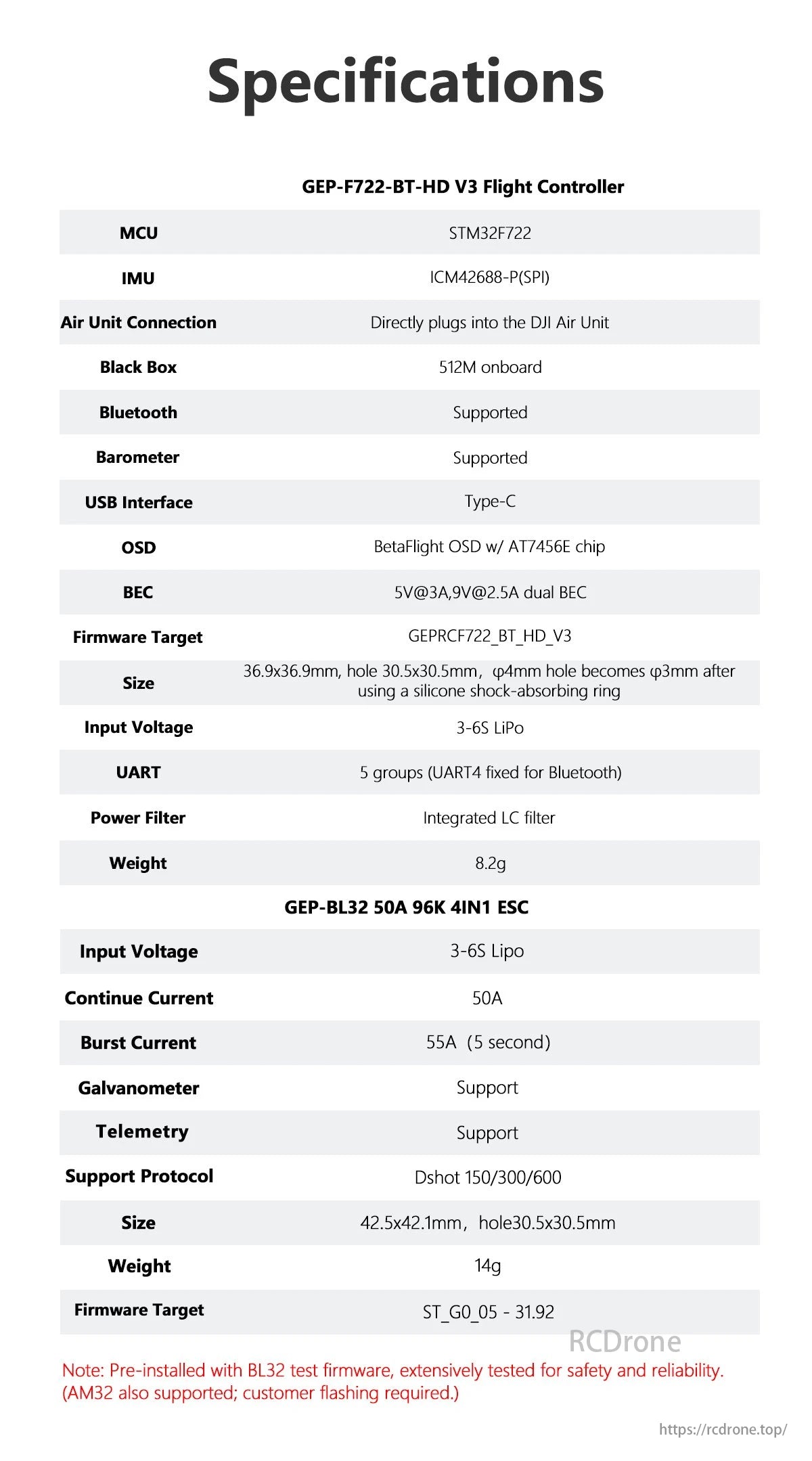 | Firmware Target | GEPRCF722_BT_HD_V3 |