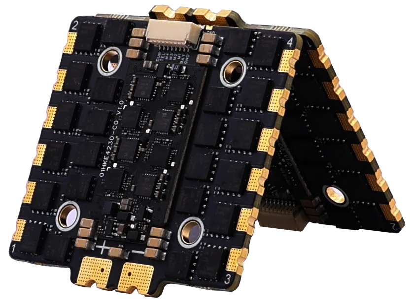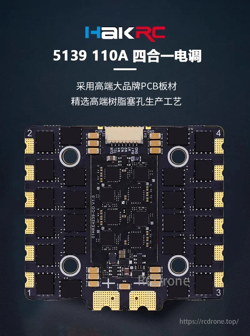 HAKRC 5139 110A 4-in-1 Drone ESC. Uses high-quality PCB materials and advanced resin-filled hole manufacturing process for superior performance.