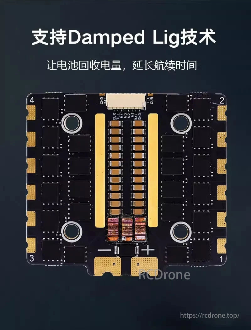 This ESC integrates 40V high-current MOSFETs, ensuring long service life and robust load-bearing capability. Industrial-grade LDO regulators offer enhanced temperature resistance, and high-quality Murata capacitors from Japan deliver excellent filtering for smooth, interference-free performance.