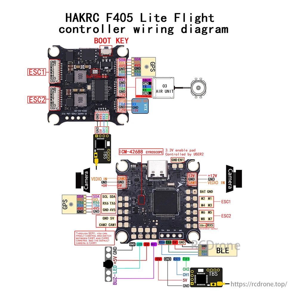 HAKRC F405 Lite Flight Controller has direct plug-in sockets for quick, easy operation with multiple connections.