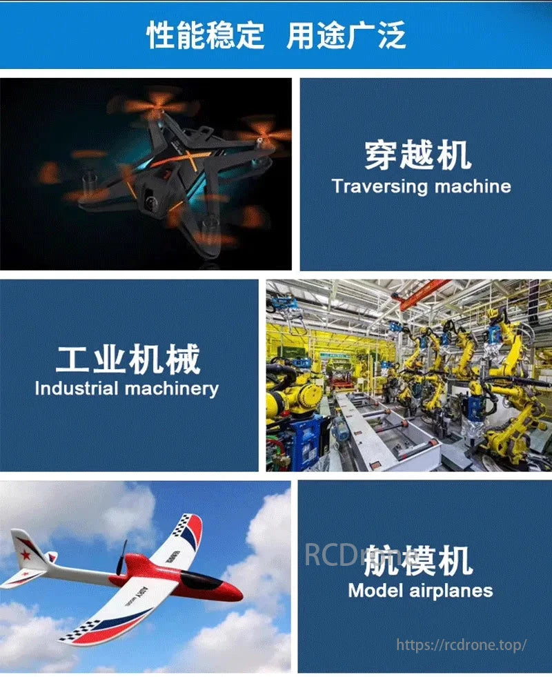 Stable performance, versatile use in traversing machines, industrial machinery, and model airplanes. Ideal for various applications.