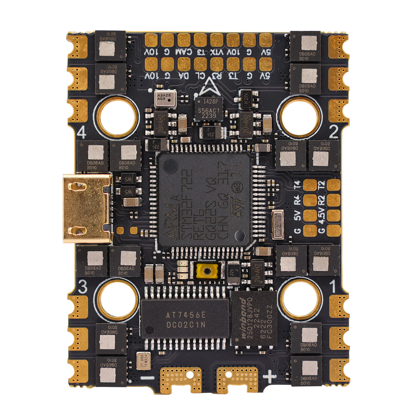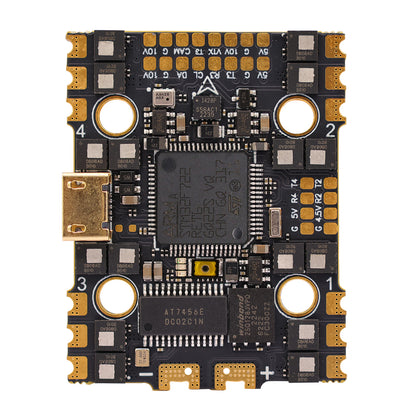 The HAKRC F722 50A AIO Flight Controller is a high-performance all-in-one solution designed for 3–6S FPV drones, cinewhoops, and freestyle builds. It integrates a powerful 32-bit STM32F722RET6 processor, BLHeli_32 50A ESC, and dual independent BECs (5V/2.5A & 10V/2A) in a compact 40×30mm layout with a 20x20mm mounting hole pattern.