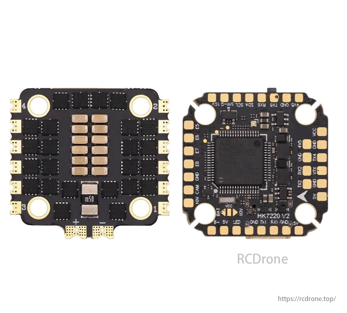 HAKRC F722 FPV Drone Stack includes ARM STM32F722, m50 label, and multiple ports for versatile drone use.