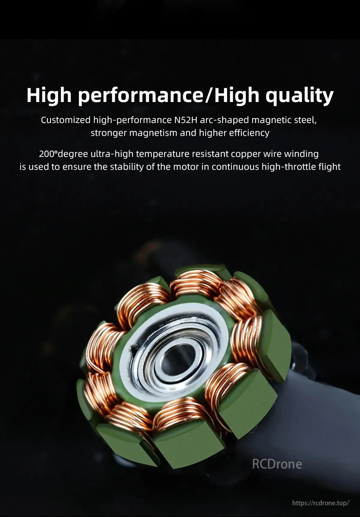 High-performance HGLRC SPECTER 1303.5 Brushless Motor with customized N52H arc-shaped magnetic steel offers stronger magnetism and higher efficiency.