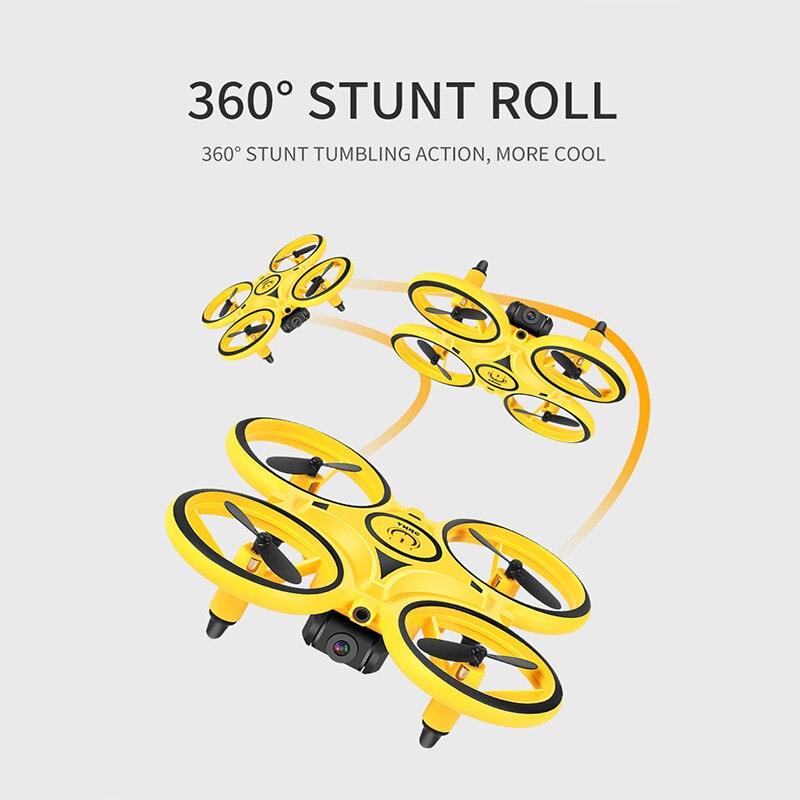 This mini drone features advanced web celebrity induction technology, allowing for automatic takeoff and landing. It also comes equipped with a watch-like remote control, enabling intuitive flying. The drone supports smart obstacle avoidance, 3D rolling capabilities, and headless mode flight. Additionally, it has an emergency stop function and intelligent height control for safe and stable operation.