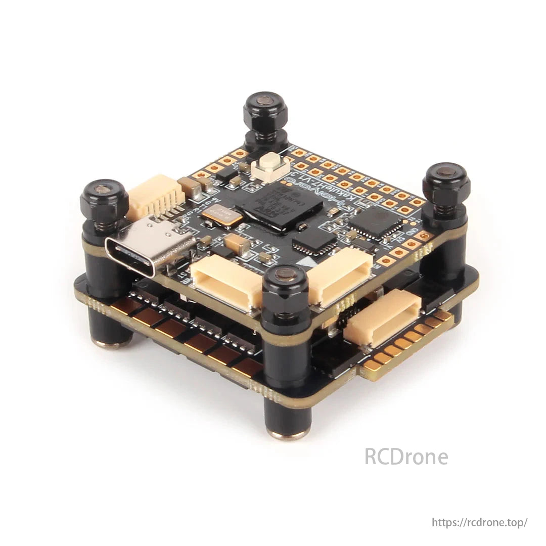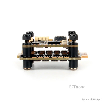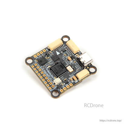 Flight Controller with STM32H7 MCU, 8 motor outputs, Bluetooth, I2C, UARTs, LED/buzzer, OSD, blackbox logging, DJI/Caddx HD connector. 30.5x30.5mm, 8g.