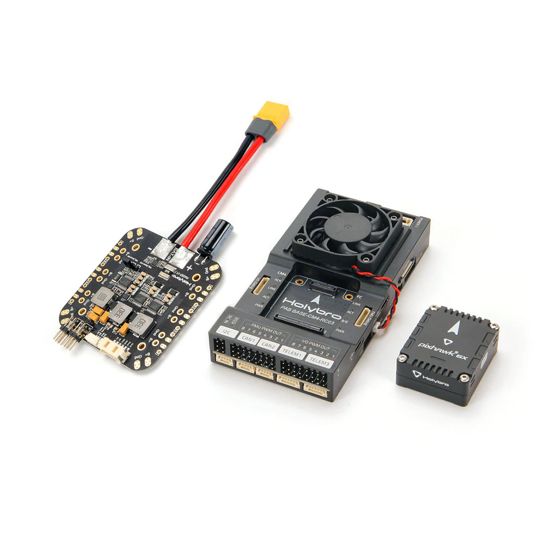 The Holybro Pixhawk RPi CM4 Baseboard combine the Pixhawk FC module with the Raspberry Pi CM4 companion computer in on compact form factor with all the connections you need for development. It follows the Pixhawk Connector and Autopilot Bus Standard, allow easy swap of FC Module with any FC that follows the Pixhawk Bus Standard. The FC Module is internally connected to RPi CM4 through TELEM2, and can also be connected via ethernet with a external cable provided. It is compatible with the Pixhawk 5X & 6X flight controller module.The difference of Pixhawk 6X and Pixhawk 6X (New version)