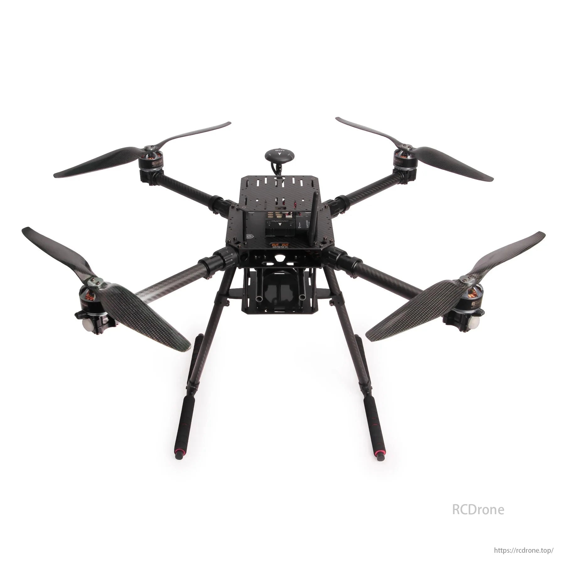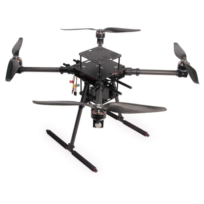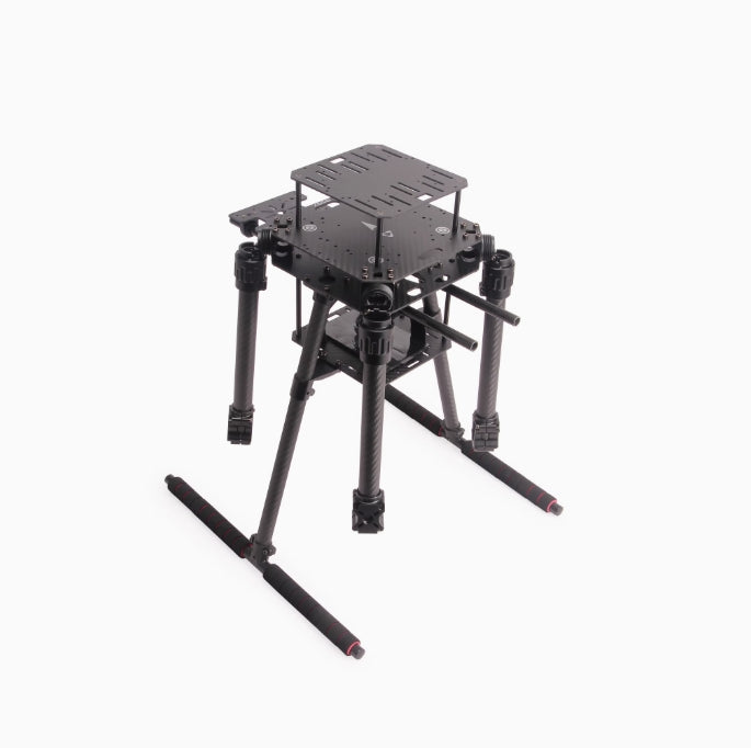 Frame: Carbon fiber body with 650mm wheelbase, foldable arms, and strengthened landing gear