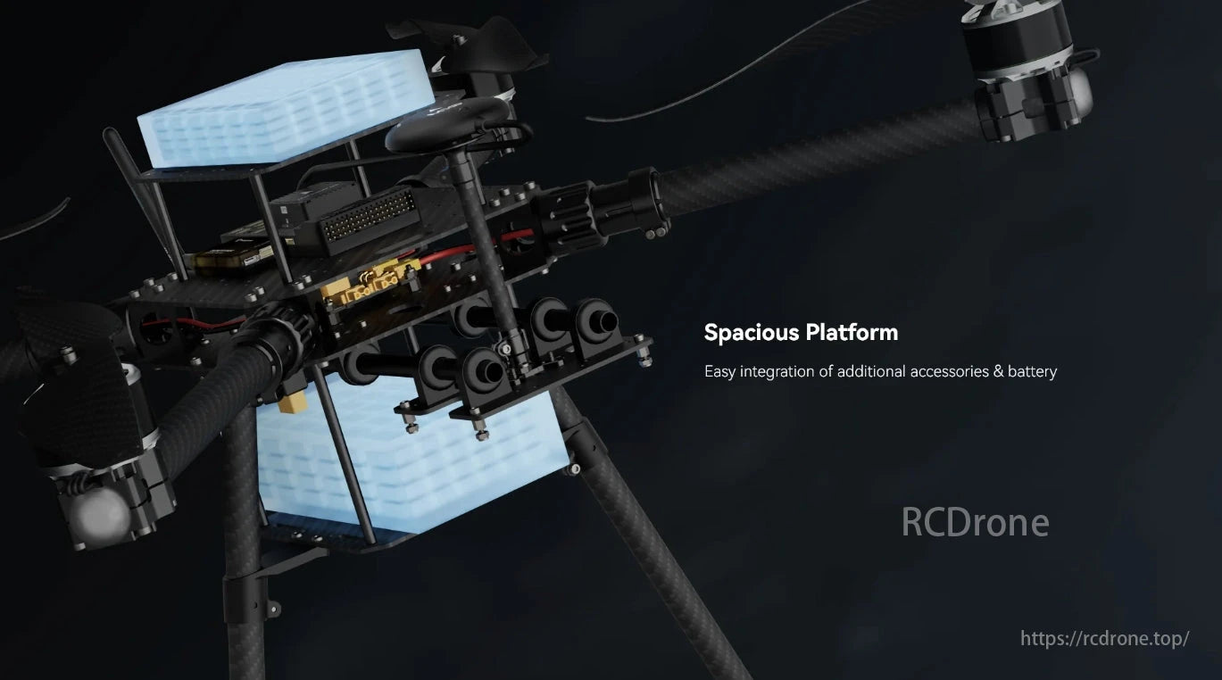 - Upper & Battery Plate - 120mm x 128mm carbon fiber plate for various payload, accessories, or battery.