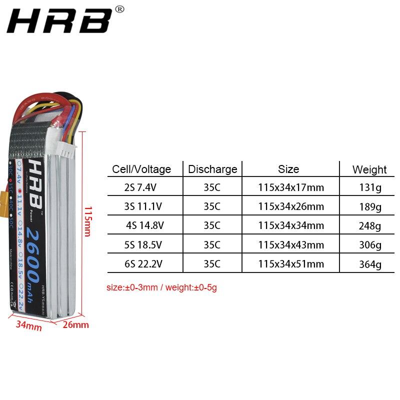 HRB Lipo Battery 2600mAh T Dean 2S 3S 7.4V 35C XT60 Plug 11.1V 14.8V 18.5V 22.2V For Quadcopter Helicopter Toy RC Parts 4S 5S 6S