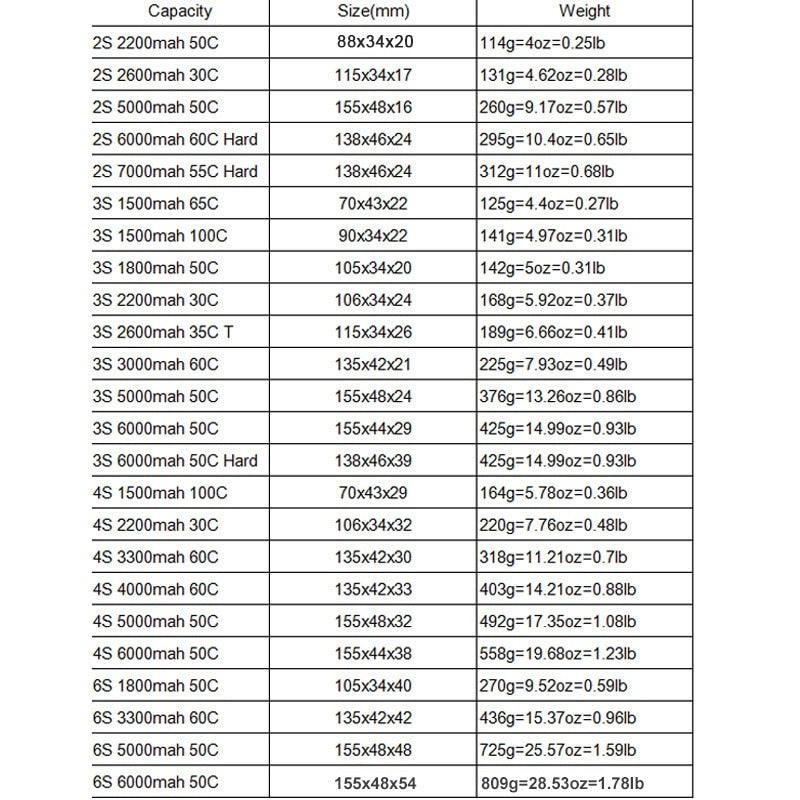 Size: 7.4V 11.1V 14.8V 22.2V