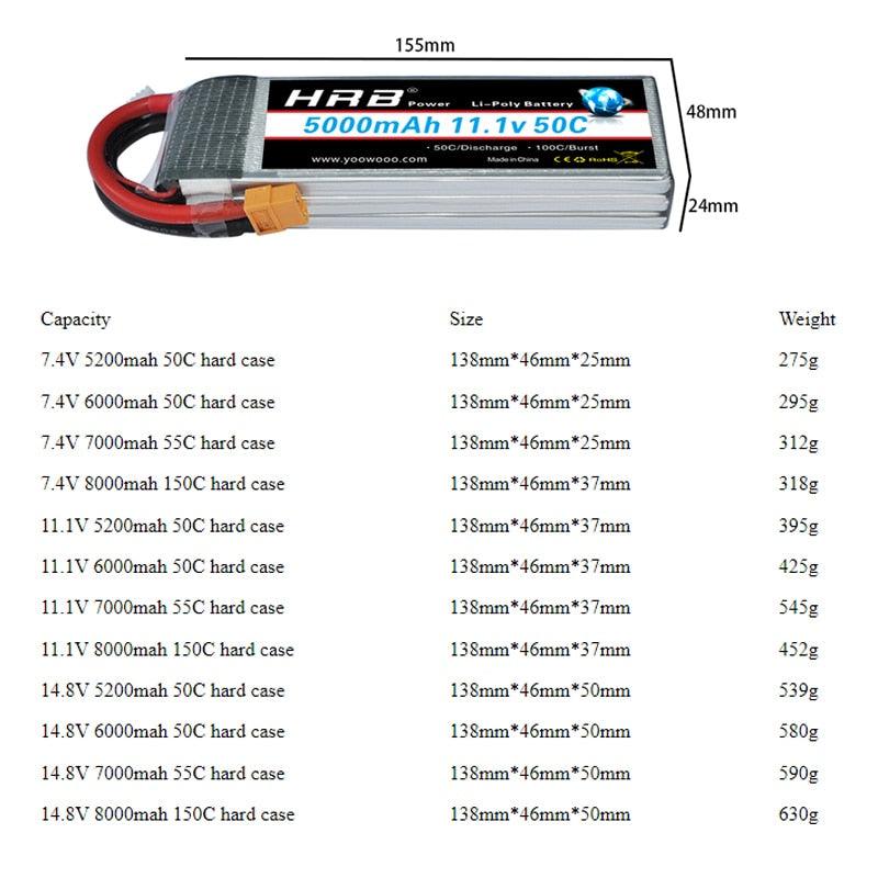HRB Lipo Battery 2S 3S 4S 7.4V 11.1V 14.8V 9500mah 6000mAh 7000mah 8000mah 60C 150C XT60 T Deans EC5 RC Parts Hard Case Drone Airplanes Cars Boat 4x4 1/8 1/10