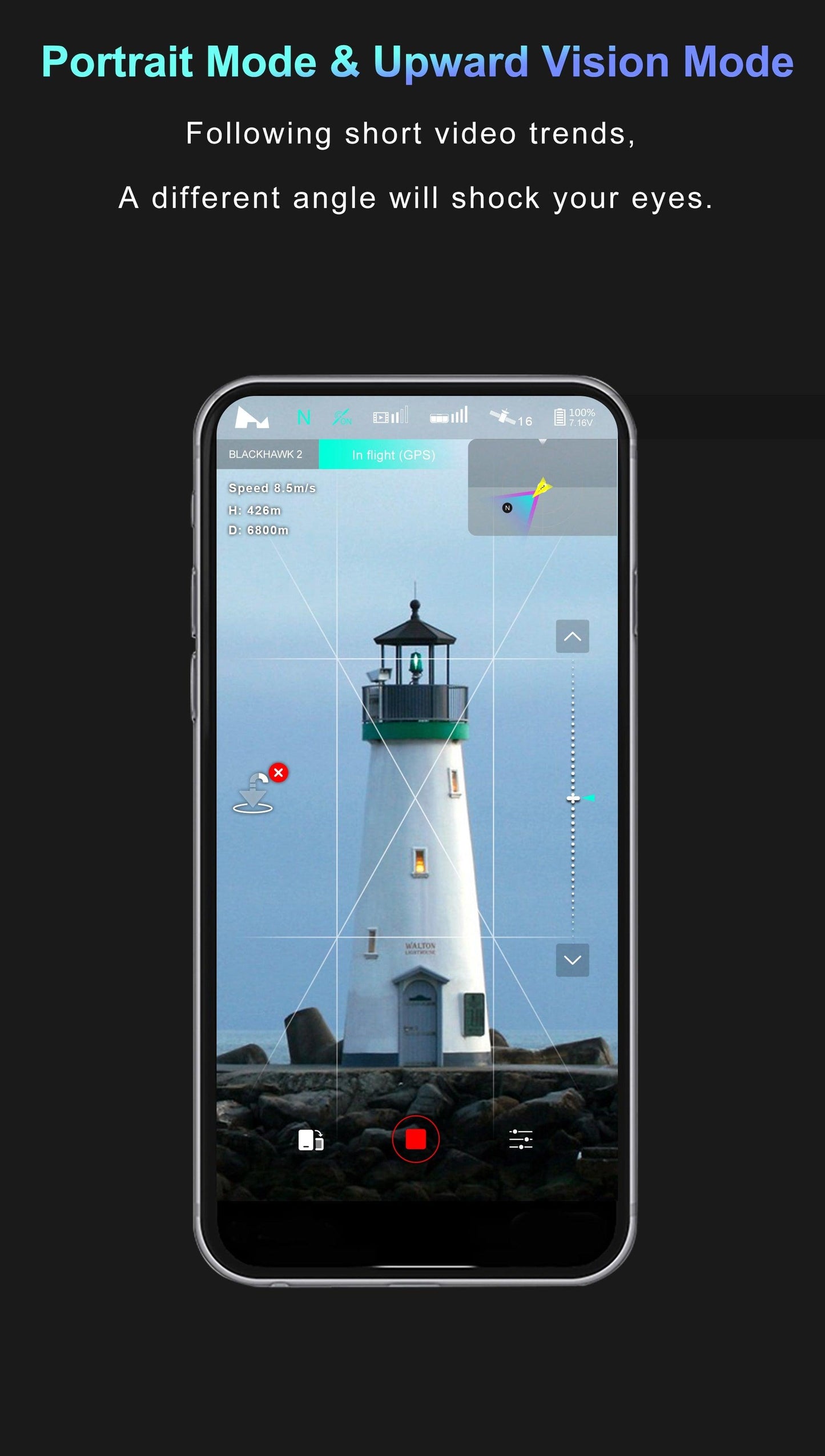 Equipped with a three-axis brushless gimbal, the camera achieves smooth, cinematic movements rivaling those in movies. The BLACKHAWK 2 features various intelligent modes, including Surround Following Line fly, Creative Mode, Waypoint Mode, Drifting Mode, Interest Point Intelligent following, and 360-degree Shooting Away Mode, as well as GPS Comet Mode for enhanced control and versatility.
