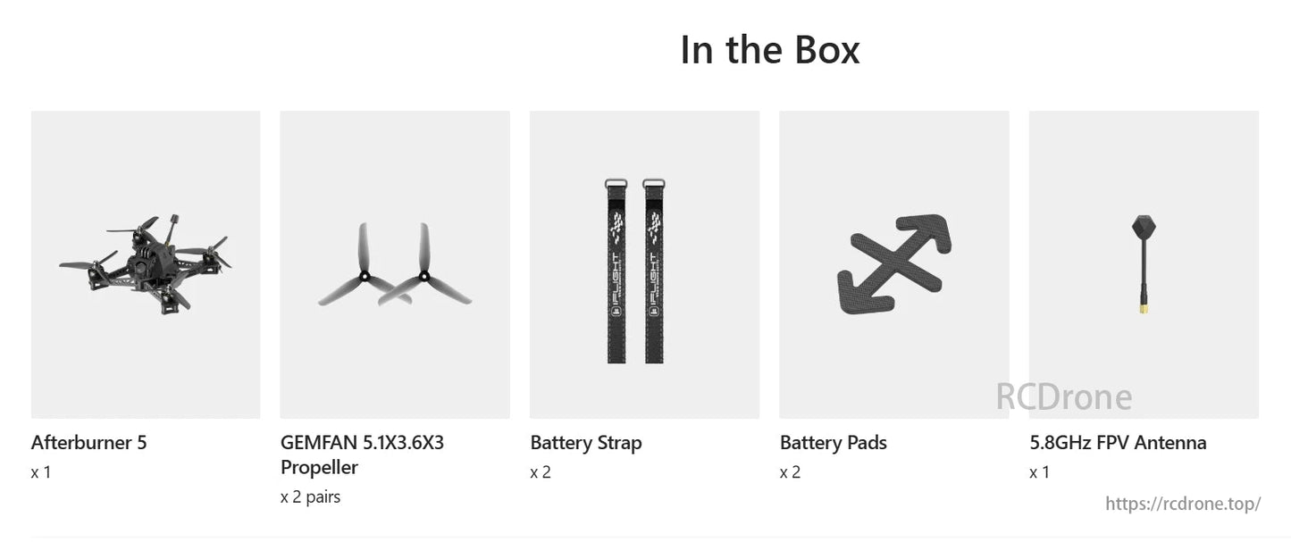 Smallest Footprint: The Afterburner’s compact design is 20% smaller than traditional 5-inch freestyle drones, enhancing portability, reducing drag, and improving overall performance.