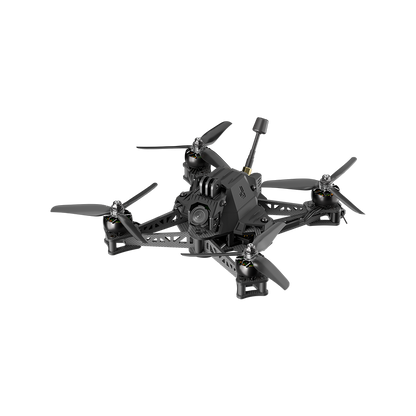 Aerodynamic body reduces surface drag for minimal resistance. The CNC Action Camera Mount offers strength and stability with minimal wobble, ensuring a clear view at angles [5°-60° 16:9 without props]. A truss structure in the vertical arms minimizes weight while maximizing strength and resonance performance. This drone boasts the smallest footprint—20% smaller than traditional 5-inch X-shaped drones. Its star shape delivers perfect balance across all axes. Integrated GPS ensures optimal satellite signals, enhancing reliability. These features underline the drone's advanced design and functionality, setting it apart in performance and efficiency.