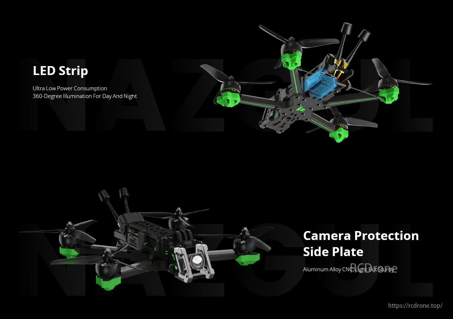 iFlight Nazgul F6 V2 FPV Drone with LED strip and camera protection side plate.