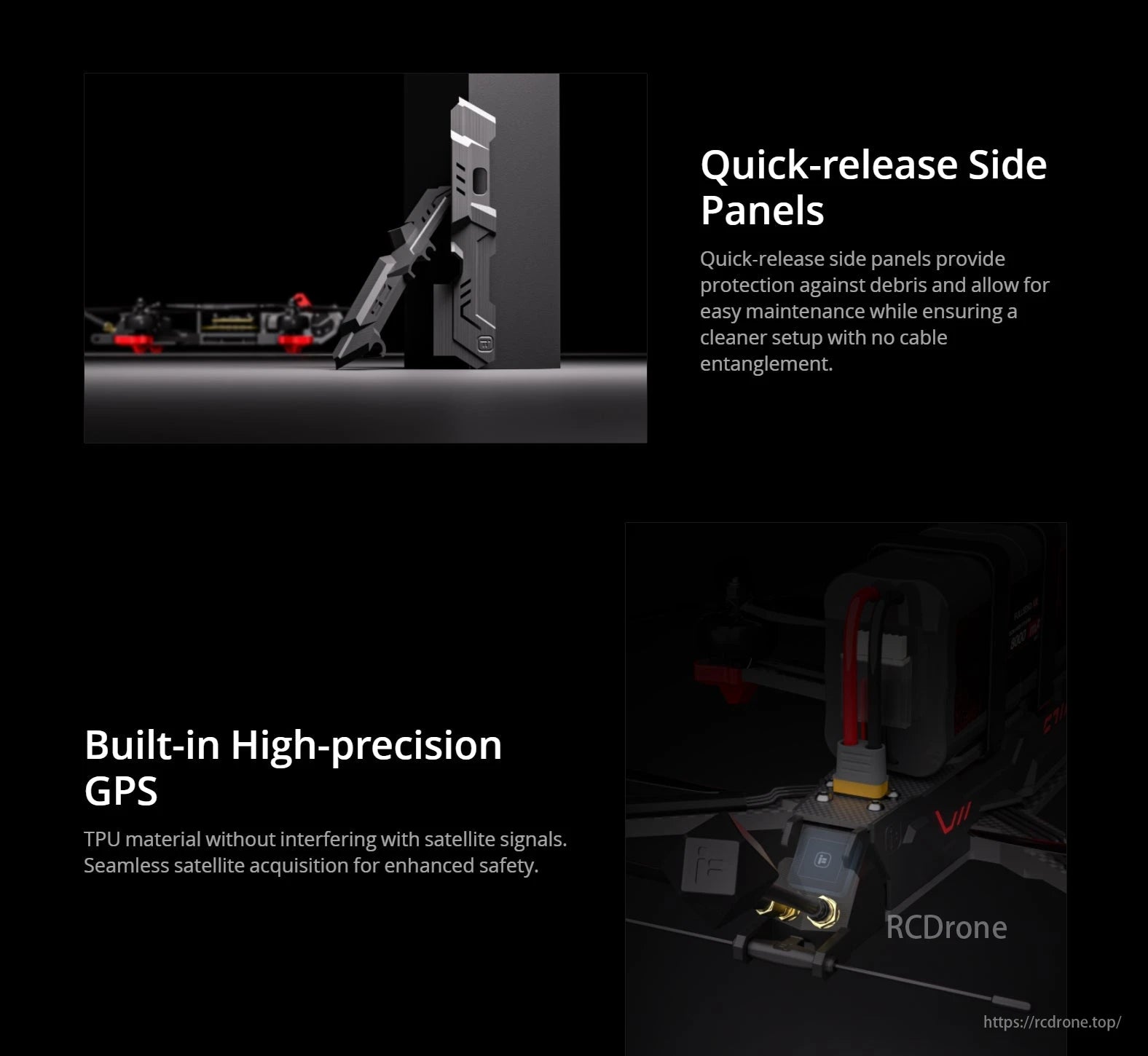 Quick-release side panels protect against debris, ease maintenance. Built-in high-precision GPS ensures seamless satellite acquisition for enhanced safety.