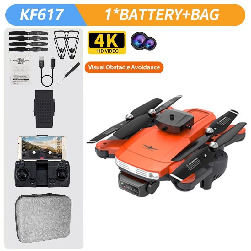 KF617 Pro Mini Drone: Professional-grade quadcopter helicopter with 4K dual camera, FPV (first-person view) capability, height hold function, obstacle avoidance feature, and remote control operation. Includes a mobile phone stand for easy monitoring.