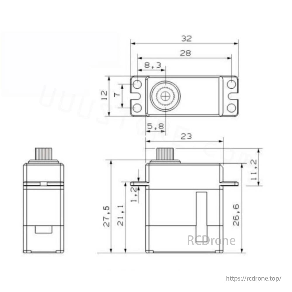 - Torque:2.2kg.cm at 6.0V 1.8kg.cm at 4.8V