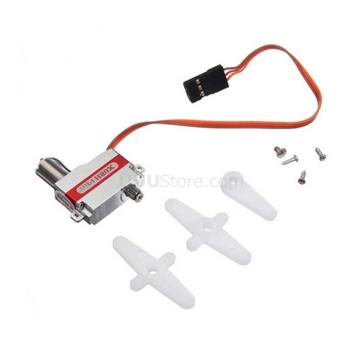 Product Specifications: * Dimension: 26.5mm x 76mm x 23.5mm (Orange) * Signal: Red * Positive Wire: Brown * Negative Wire: - * Specification: + PWM Impulse Signal: Operating Voltage DC - 7.4V + Impulse Voltage (TTL Level): - HIGH: Minimum 3V, Maximum VCC - LOW: Minimum 0V, Maximum 1.8V * Operating Voltage: 3.8V to 8.4V * Impulse Time: 1000-2000us * Stall Torque: 4.8Kg/cm (at 7.99V) * Angle: -60°/+60° (within 100ms)