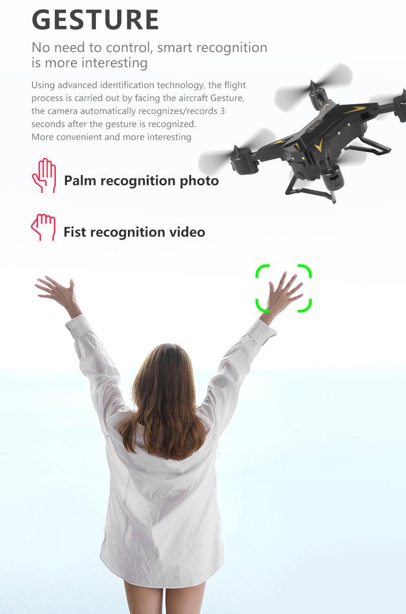Function: Foldable body, One key start, One key landing, Altitude hold, Wifi connect, APP control, Gesture photo, Gesture recording,Image follow,trajectory flight,Speed Control,Real-time transmission, MV Image and Video Sharing, GPS Positioning,one key return,Electric camera,fixed point surround