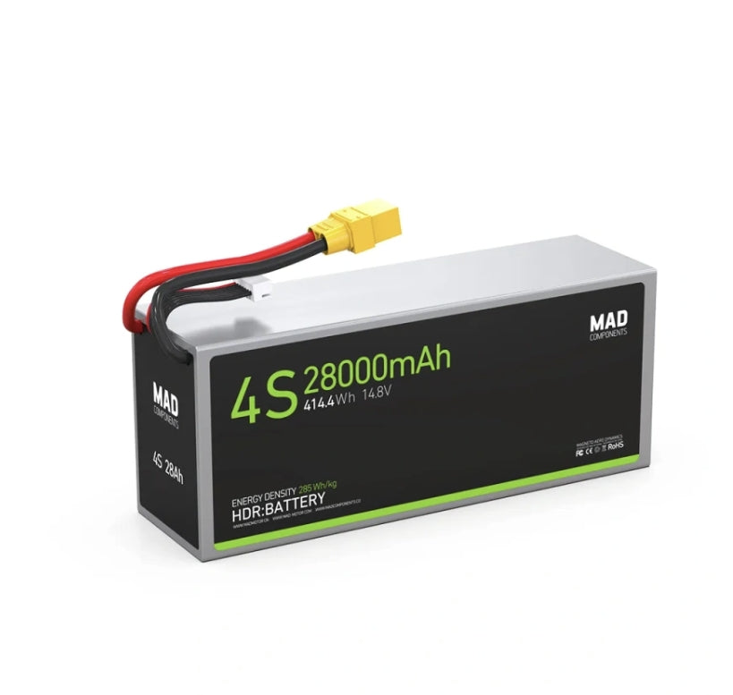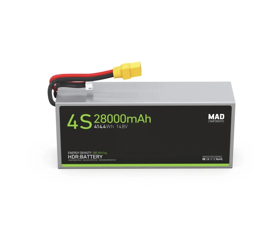 This MAD 4S 28Ah battery delivers powerful, safe, and efficient energy storage for drones, ensuring reliability in demanding aerial applications.