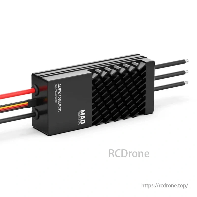 The MAD FOC 120A 8-14S ESC is a high-performance electronic speed controller designed for industrial UAVs and heavy-lift drones, supporting FOC (Field-Oriented Control) modulation for smooth and efficient power delivery. This ESC is optimized for Mad M10, M17, and M20 series motors, supporting 10-12kg take-off weight. Its advanced sinusoidal drive ensures stable operation even in harsh environments, while the integrated self-check program enhances system reliability and security.