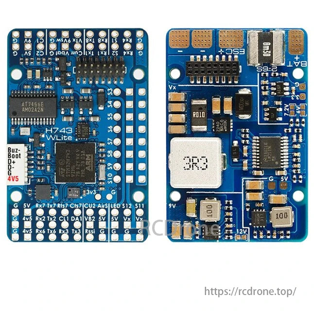 STM32H743VIH6, ICM42688-P, DPS310, OSD, 7x UARTs, 1x CAN, 2x I2C, 12x PWM outputs, 3x BEC