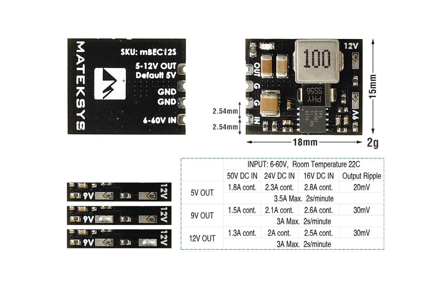 MATEK Mateksys MICRO BEC 6-60V TO 5V9V12V-ADJ SPECIFICATIONS