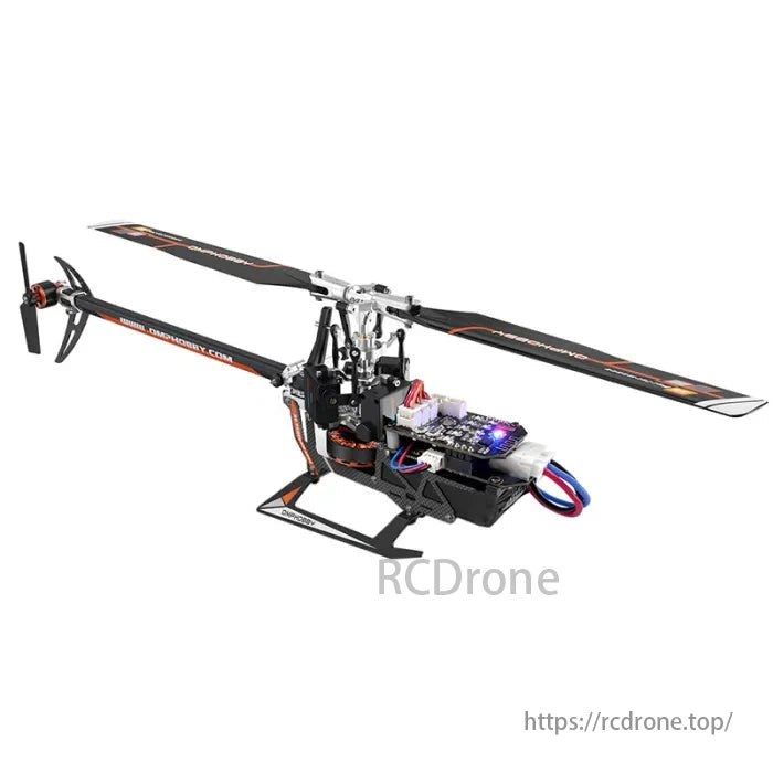 OMPHOBBY M1 EVO offers an exhilarating flight experience for all skill levels. Features dual brushless motors, 290mm main rotor diameter, and weighs 118g.