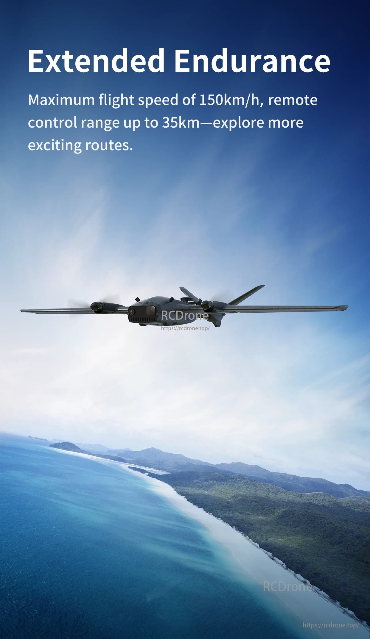 ZMO V2 Tilt-Rotor FPV Drone, Extended endurance FPV drone with 150km/h speed and 35km range for exploring exciting routes.