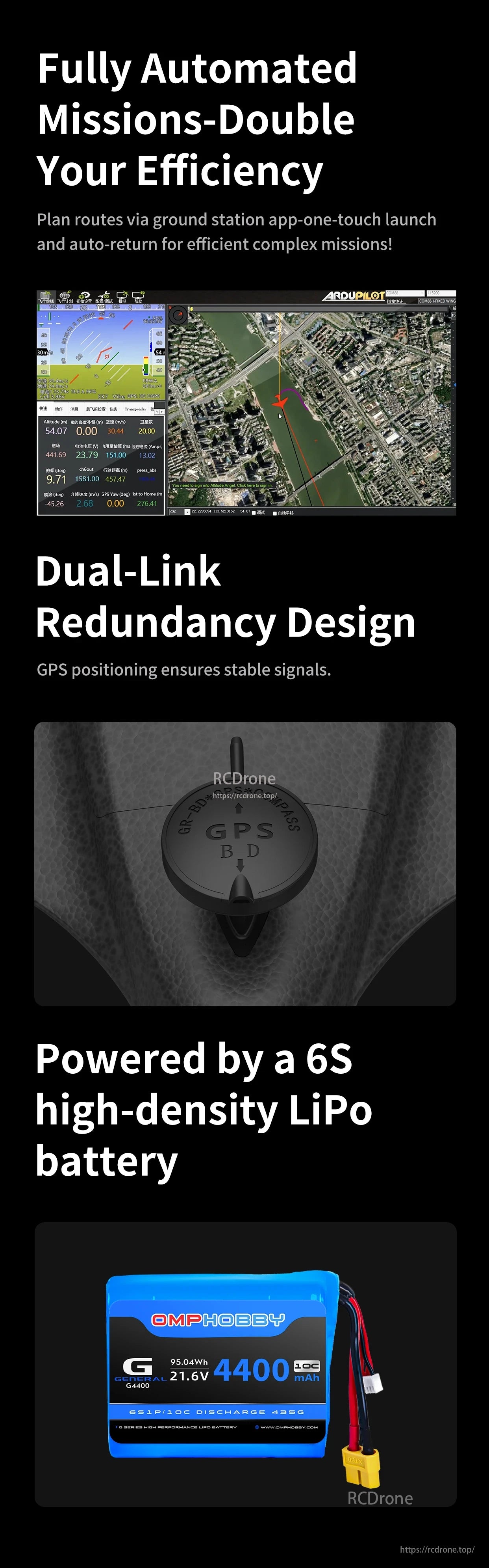 ZMO V2 Tilt-Rotor FPV Drone, Automated missions double efficiency with ground station app. Dual-link redundancy ensures stable GPS. 6S LiPo battery extends flight time.