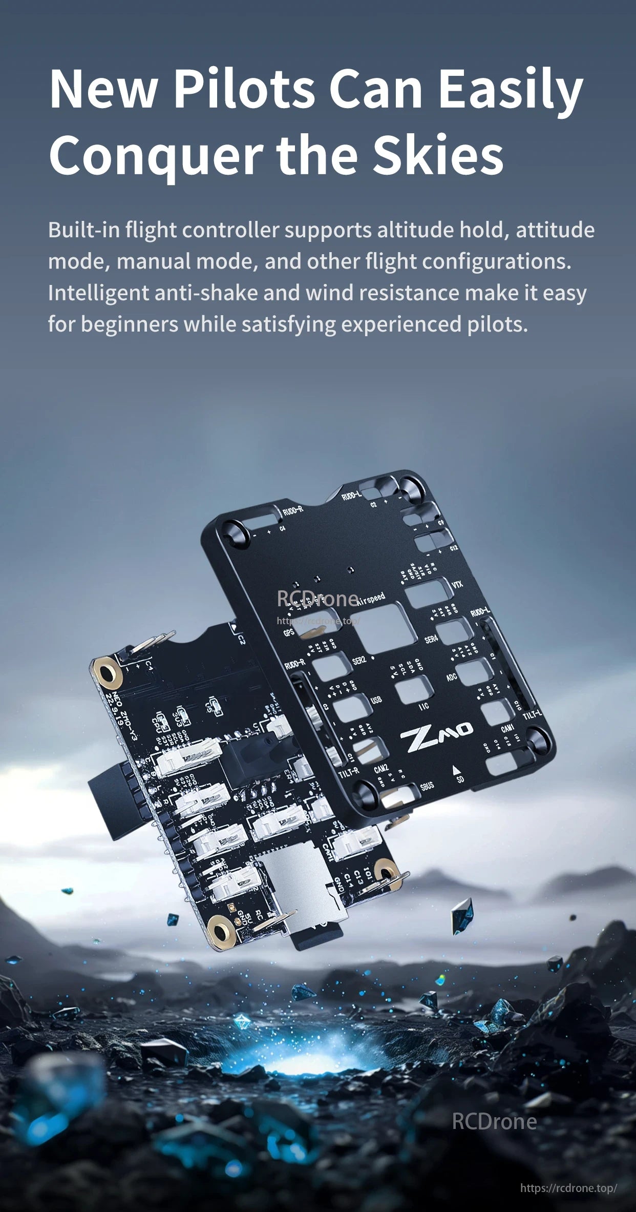 New pilots can easily master the skies. The built-in flight controller offers altitude hold, attitude mode, manual mode, and more configurations. Intelligent anti-shake and wind resistance make it suitable for beginners and experienced pilots.