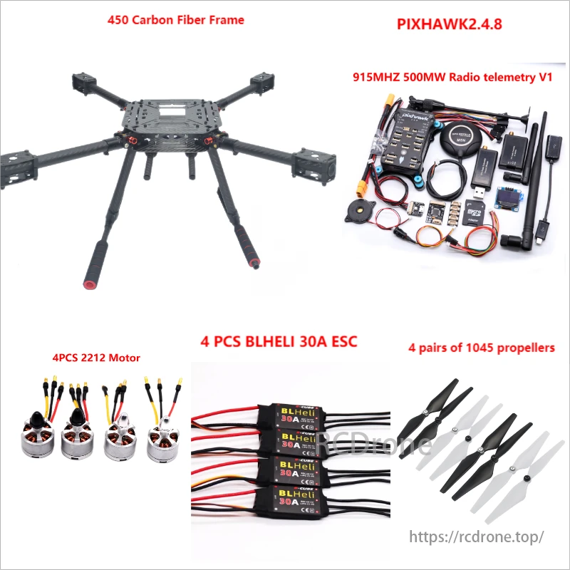 915MHZ 100MW A:F450+4 PCS BLHELI 30A +4 pairs 1045 Propellers +4 PCS 2212 920KV motor