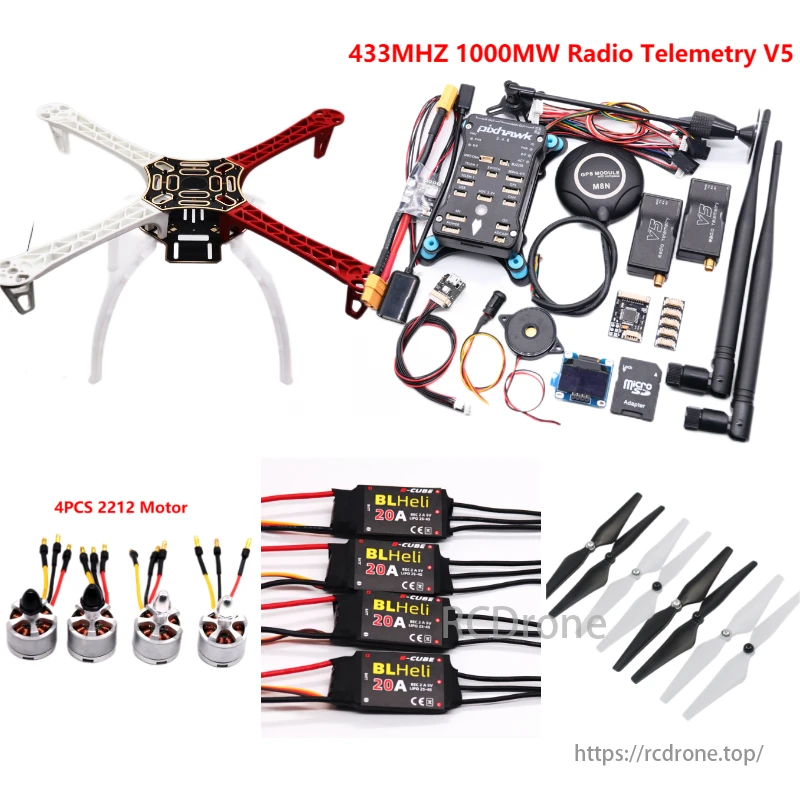 915MHZ 100MW A:F450+4 PCS BLHELI 20A +4 pairs 1045 Propellers +4 PCS 2212 motor+Landing Gear