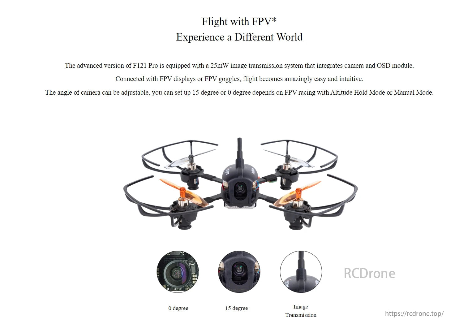 The Flight with FPV offers an immersive experience. Its advanced version features a 2SMW image transmission system, combining camera and OSD modules. Seamless connectivity to FPV displays or goggles ensures effortless flying.