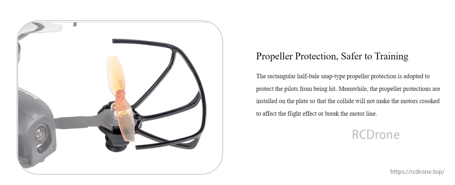 Propeller protection ensures safer training. Rectangular half-bale snap-type design protects pilots and prevents motor damage during collisions, maintaining flight performance.